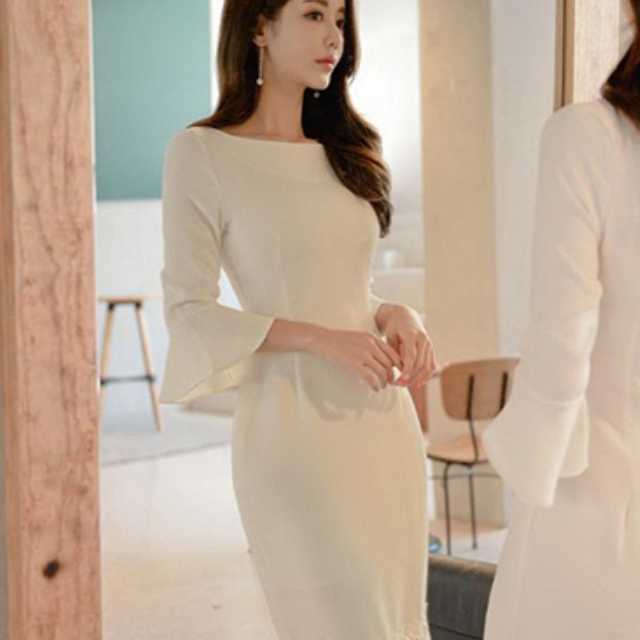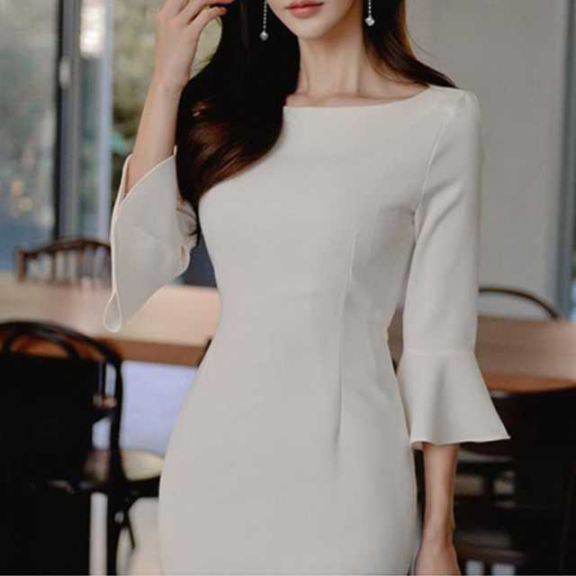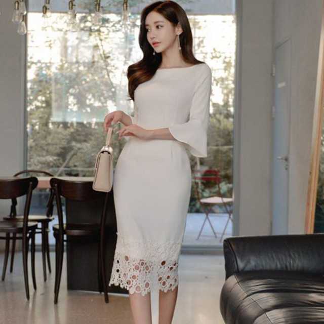 ワンピース タイトワンピース ナチュラルワンピース フォーマル おしゃれ きれいめ エレガント セクシー ワンピ タイト セクシーワンピース ラウンドネック 膝丈 大人スタイル 上品 清楚 七分袖 きれいめ レース 刺繍 袖フリル キレセク