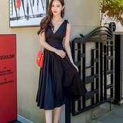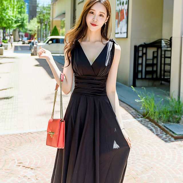 《入荷待ち》全2色 ワンピース フレアワンピース セクシーワンピース リボン パーティードレス きれいめ セクシー ノースリーブ Vネック ギャザータック Aライン エレガント キレセク