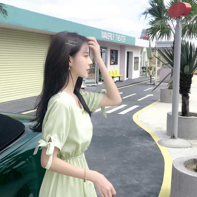 深めのVネックはちょっぴりセクシーさを醸し出しつつ、袖のリボンでキュートさをアピール。アクセントのボタンも幼さを感じさせないシンプルなデザインです。