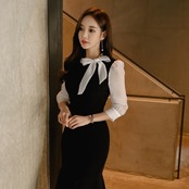 ネックラインの大きなリボンが印象的なタイトワンピース♪
