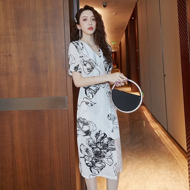 《入荷待ち》ワンピース 花柄 セクシーワンピース アシンメトリー レース ワンピ パーティー 大人 カジュアル 半袖 膝丈 ひざ丈 細見え エレガント おしゃれ 大人可愛い キレセク
