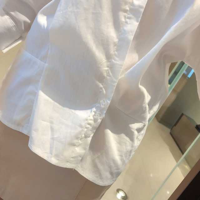 ブラウスはシンプルながら、ドルマンスリーブ風の袖が丸みを帯びたかわいいデザイン。