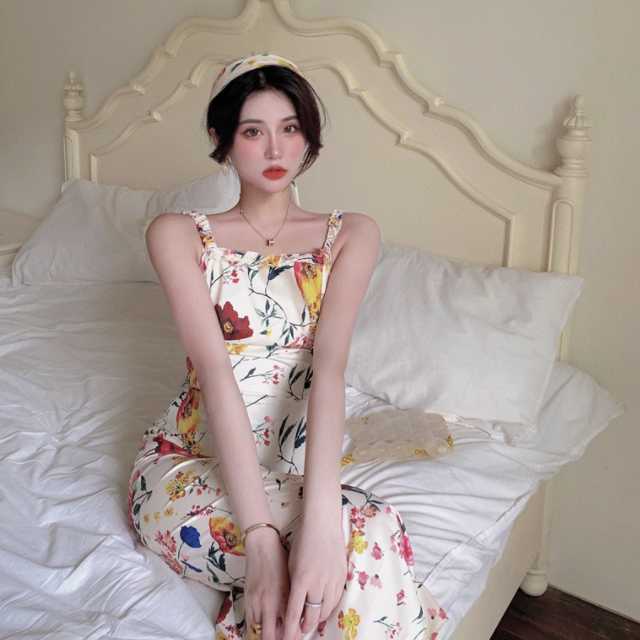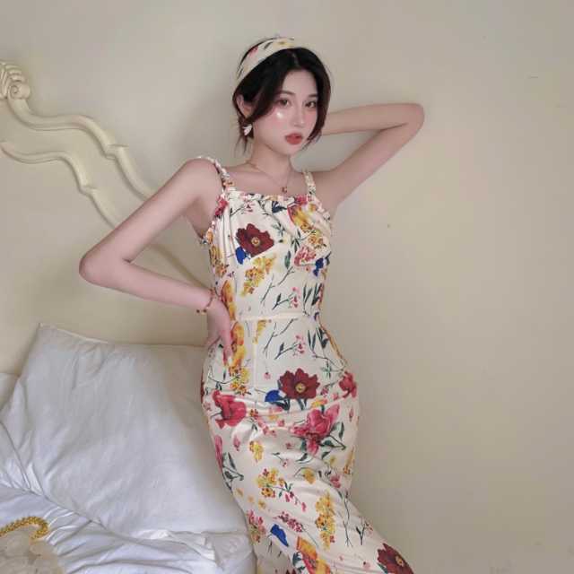《入荷待ち》 ワンピース セレブファッション 花柄 フラワープリント 光沢 ノースリーブ ロングワンピース パーティードレス キャミソールワンピ 着痩 上品 OL 春夏ワンピース キレセク