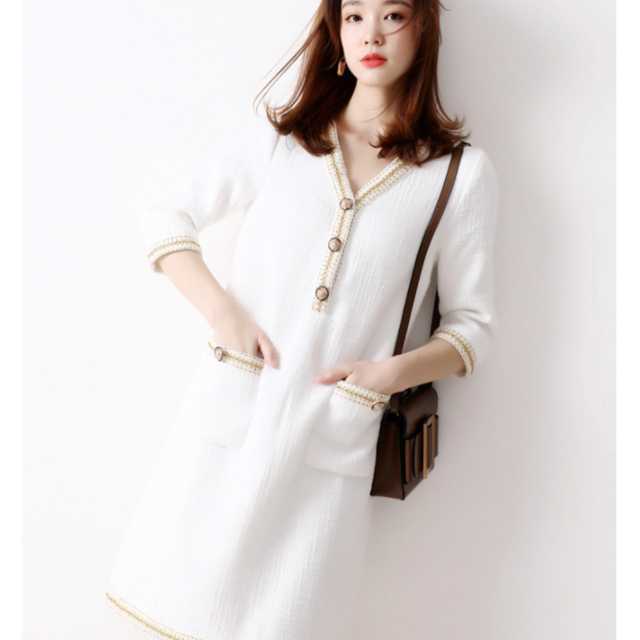 全2色 ワンピース 半袖ワンピース ひざ丈ワンピース ミディアム きれいめ Vネック レディース 春夏 結婚式 タイト フォーマル 大人 上品 チュニック キレセク