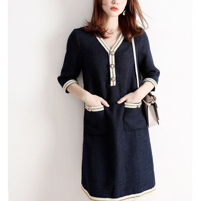 上品なアクセサリーとのコーデがピッタリなワンピースです。