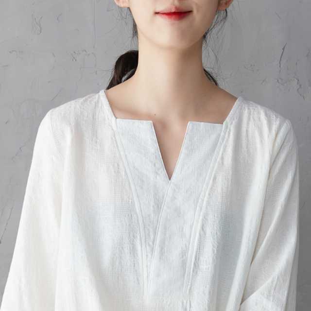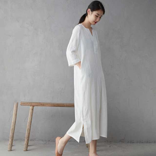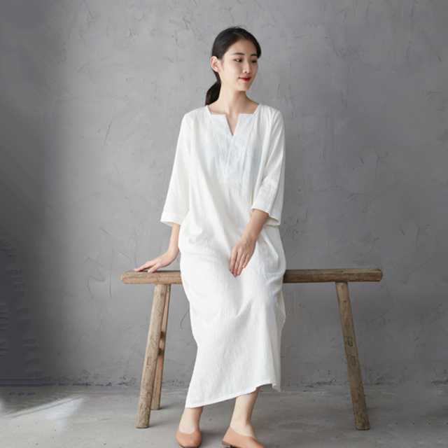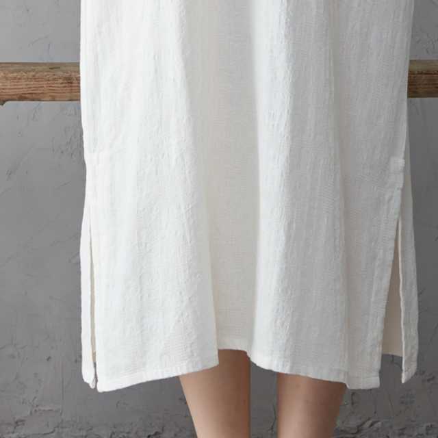 コットンリネンの優しい生地が肌に心地いい、アンティークデザインのロングワンピース。