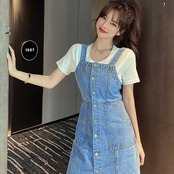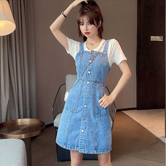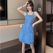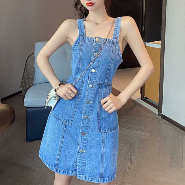 《入荷待ち》ワンピース ジャンパースカート きれいめ カジュアル レディース おしゃれ ミモレ丈 かっこいい デニム ワンピ ジャンパースカート ドレス タイト フロントボタン ひざ下丈 キレセク