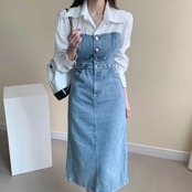 ブラウスとデニムワンピースがドッキングした、異素材MIXワンピース♪