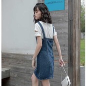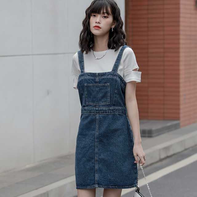 《入荷待ち》ワンピース サロペット ジャンパースカート ミニ デニムワンピース レディース 膝丈 スカート サロペットスカート デニムサロペット タイトスカート スリム キレセク