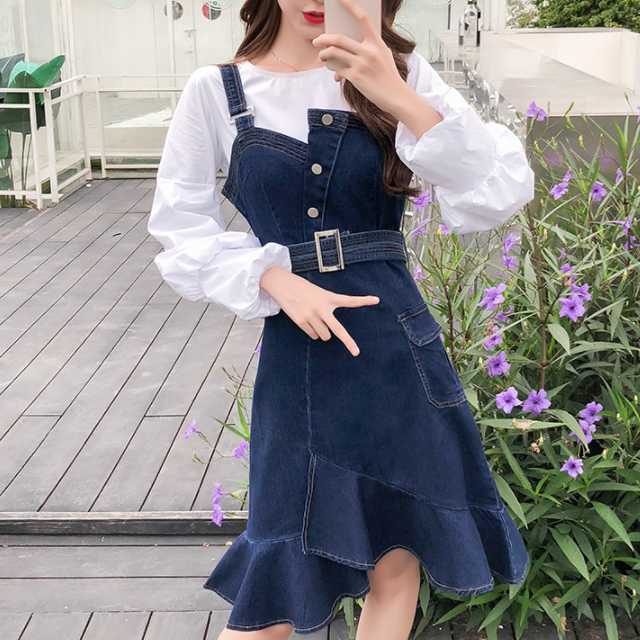 《入荷待ち》ワンピース サロペット ジャンパースカート デニムワンピース レディース 膝丈 スカート サロペットスカート デニムサロペット Aライン スリム フロントボタン キュート キレセク