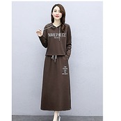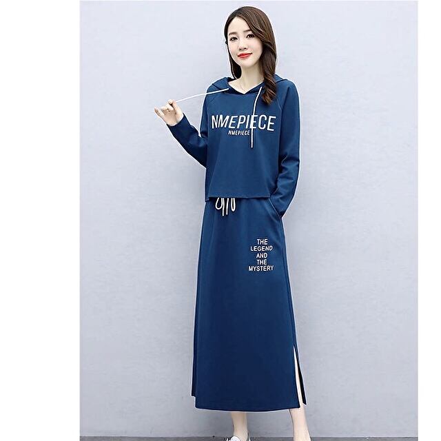 大きいサイズ ロゴ 上下セット 長袖 パーカー ルームウェア V字ネック ロングスカート スリット リラクシー ストレスフリー Roomwear かわ大