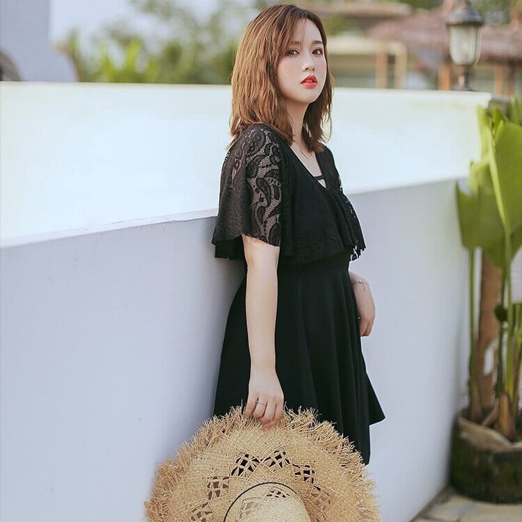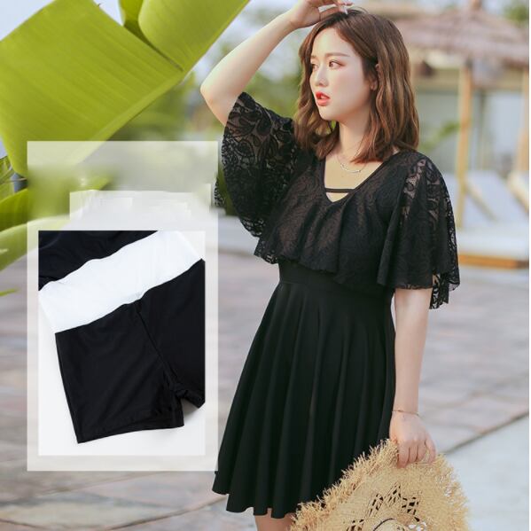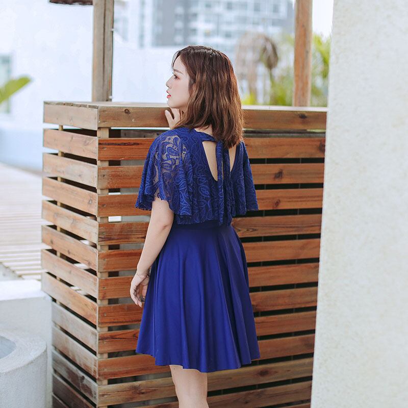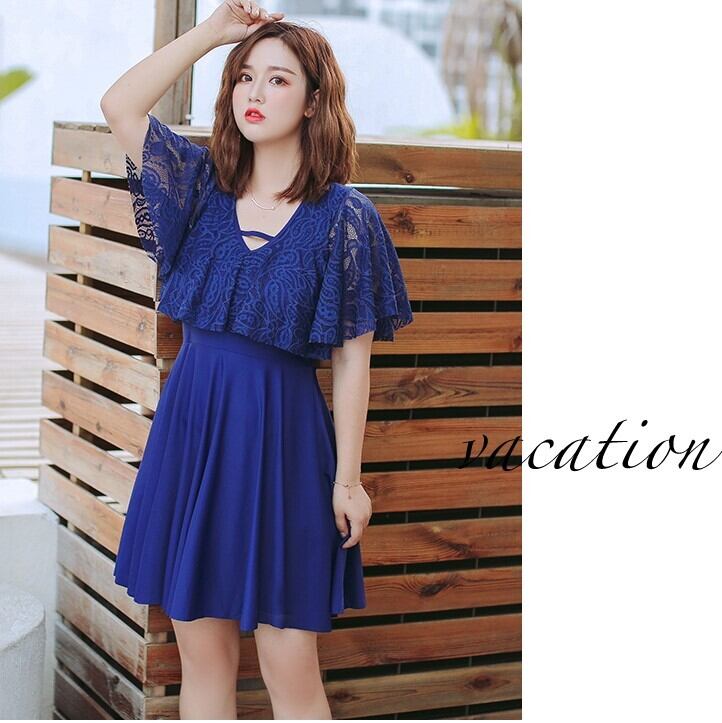 全2色 大きいサイズ レディース 水着 ワンピース レース 総レース バックリボン 体系カバー 黒 ブルー 海 ビーチ プール 海水浴 リゾート ママ ぽっちゃり 水20 水30 水40 かわ大