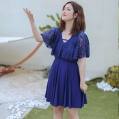 総レースデザインとバックリボンが大人かわいい、ワンピース水着。