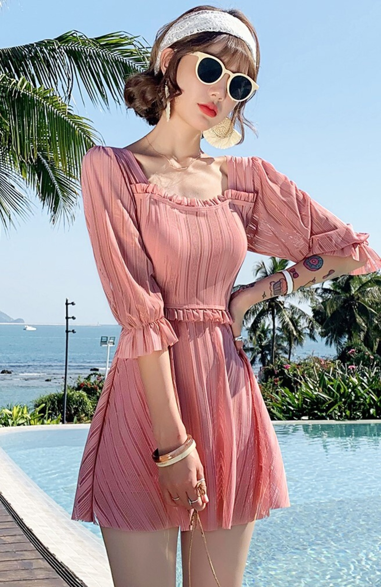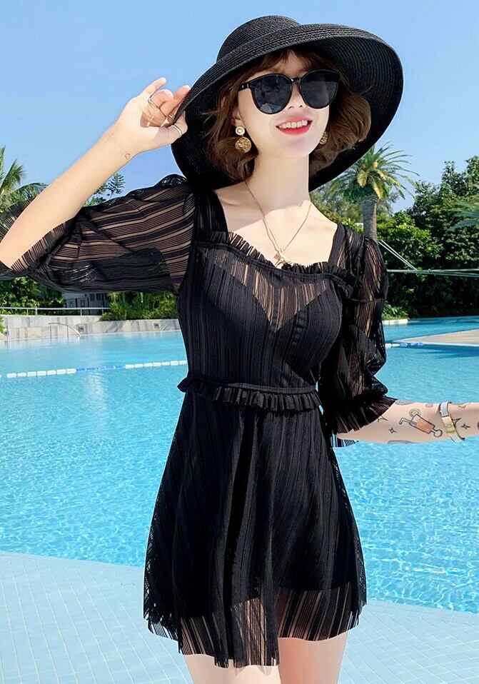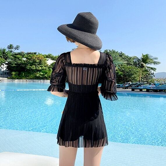 全2色 大きいサイズ レディース 水着 ワンピース シースルー ストライプ 体系カバー 黒 海 ビーチ プール 海水浴 リゾート ママ ぽっちゃり 水20 水30 水40 かわ大