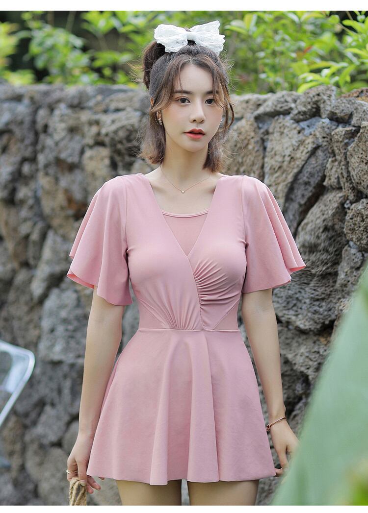 可愛いだけでなく二の腕をしっかりカバーしてくれる、ワンピース水着。