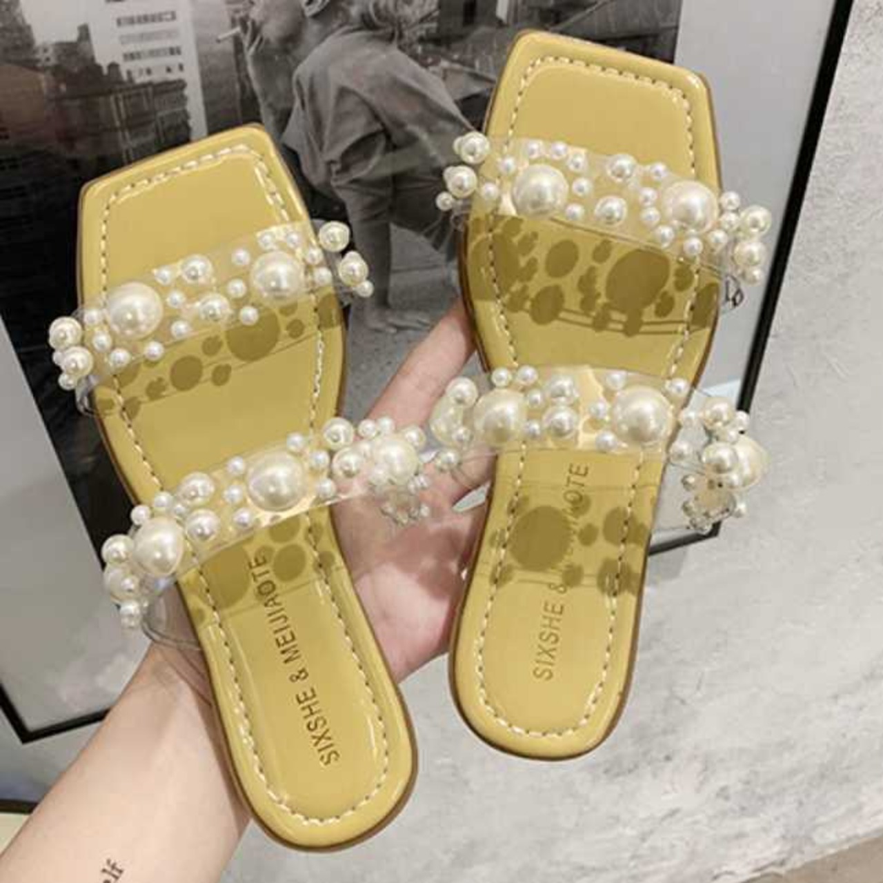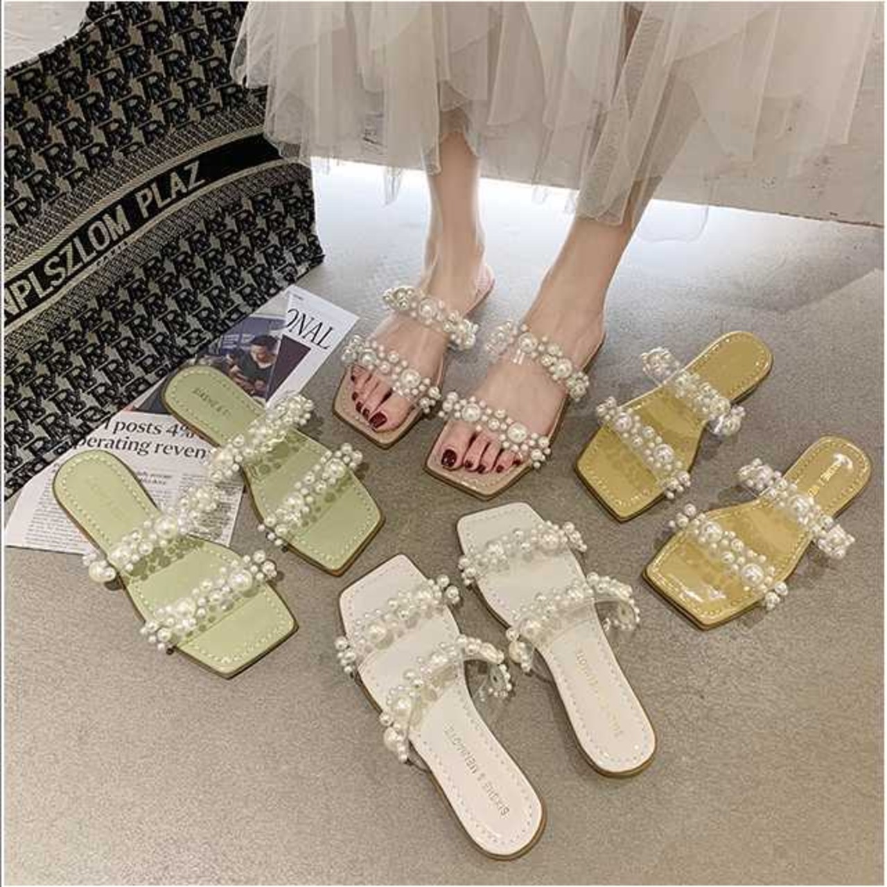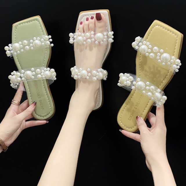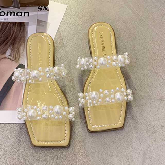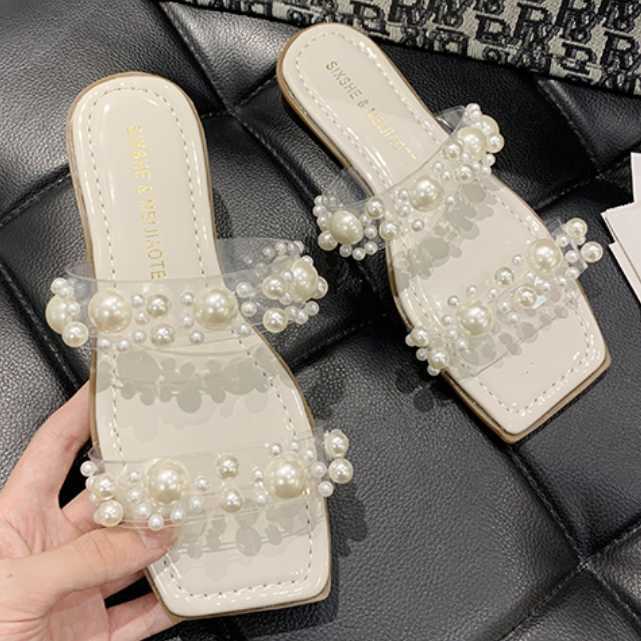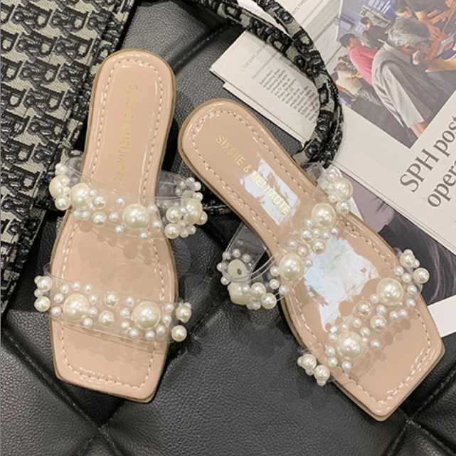 全4色 シューズ サンダル ミュール レディース シューズ 靴 クリアバンド パール フェイクパール ビジュー オープントゥ ヒール サンダル 春 夏 春物 夏物 おしゃれ キレセク