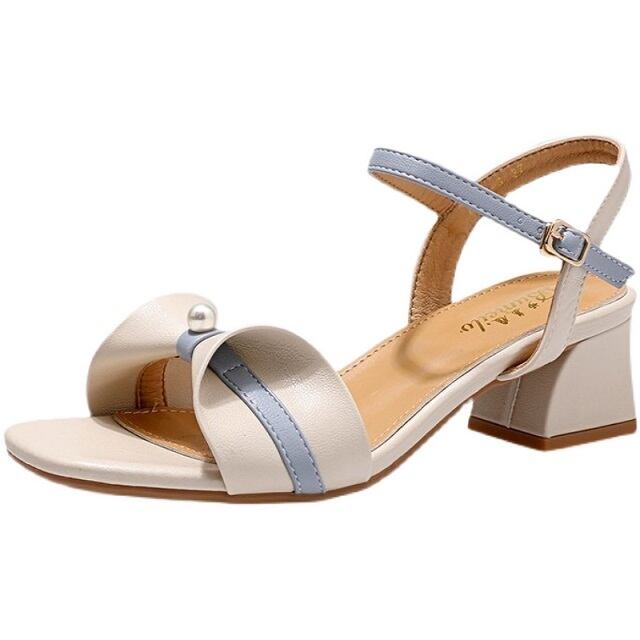 《入荷待ち》全3色 サンダル ミュール レディースサンダル オープントゥ ストラップ フェイクパール 脚長 美脚 フェミニン カジュアル 靴 大人 軽量 歩きやすい 春 夏 普段履き かかとあり キレセク