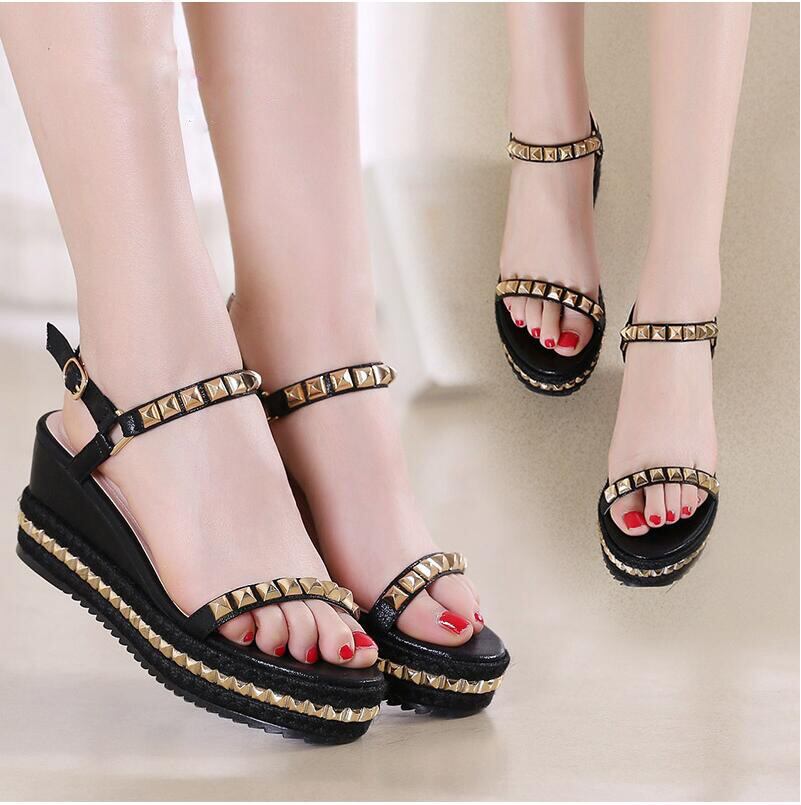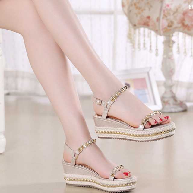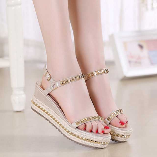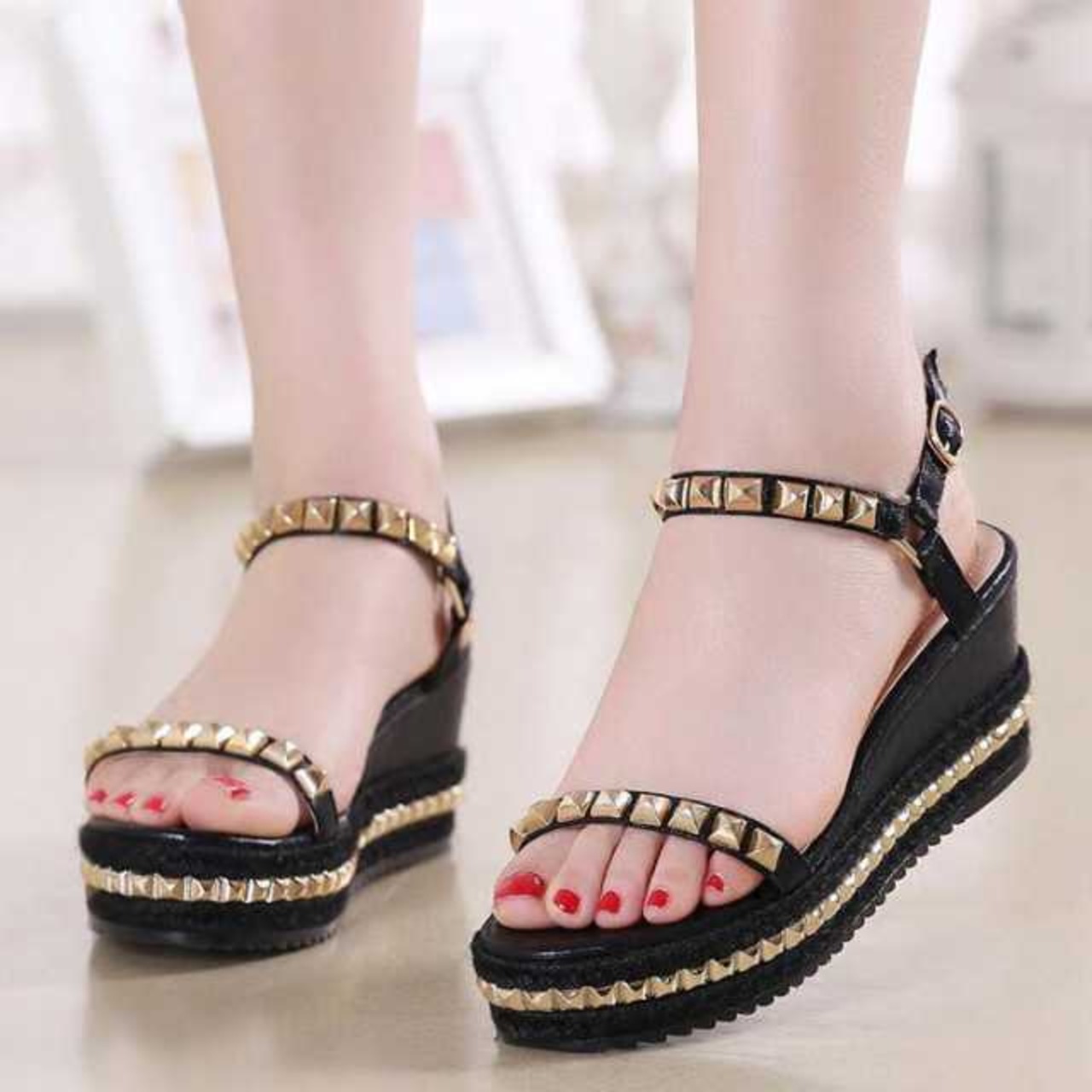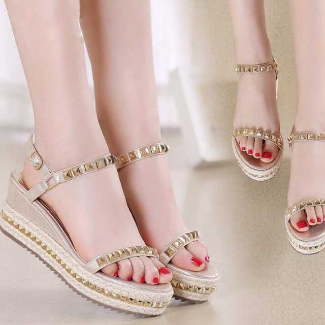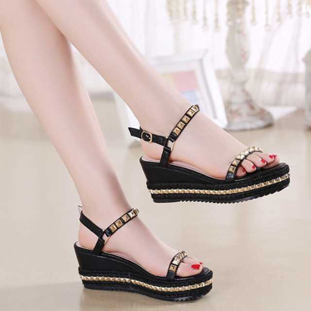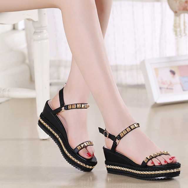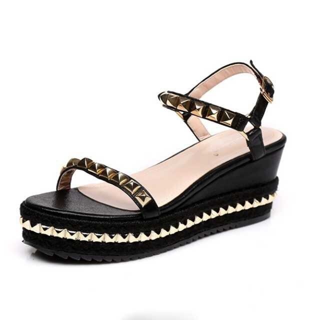 《入荷待ち》全2色 ウェッジソール サンダル ミュール ウェッジソールサンダル 厚底 可愛い おしゃれ ストラップ 美脚 カジュアル ストラップ スタッズ かかとあり キレセク