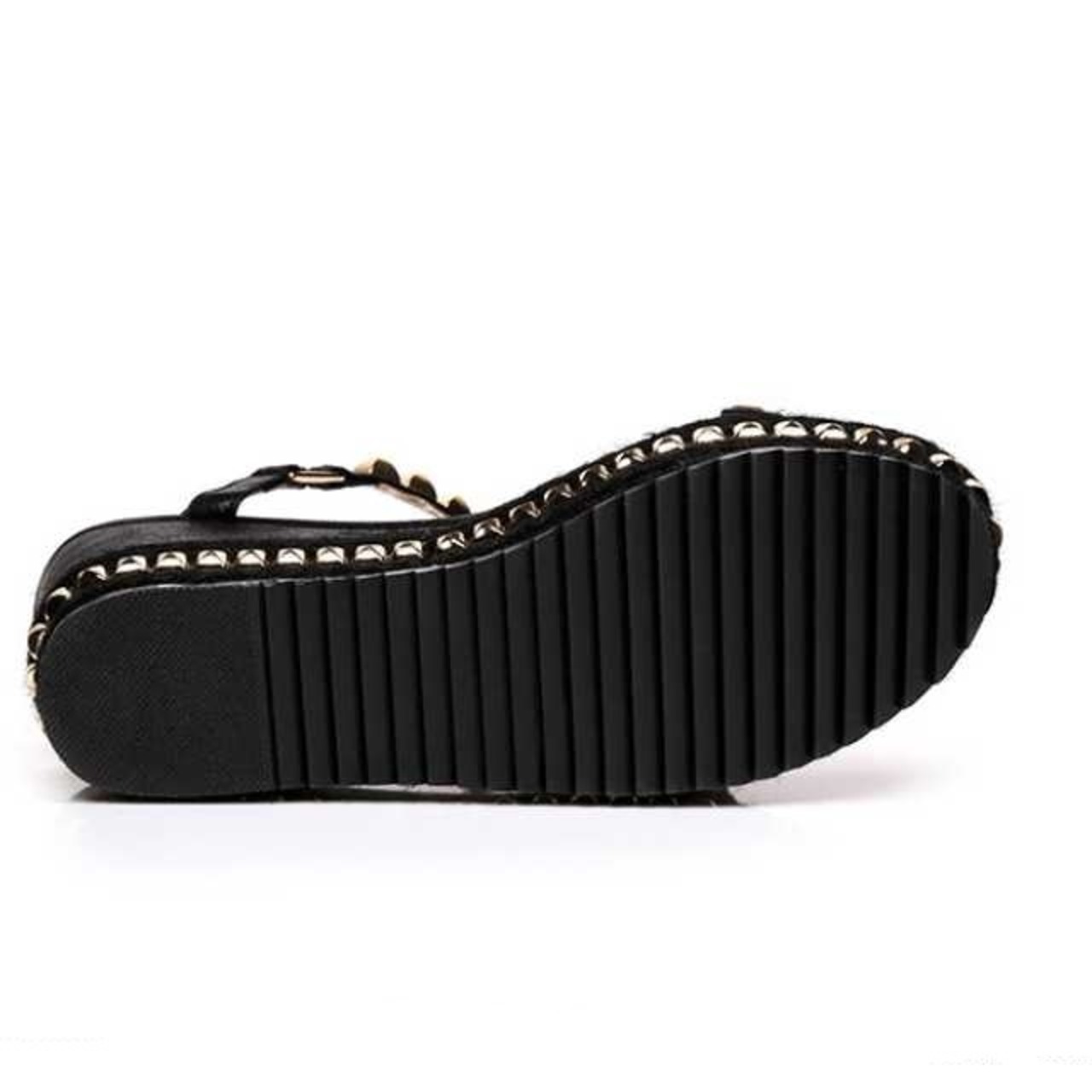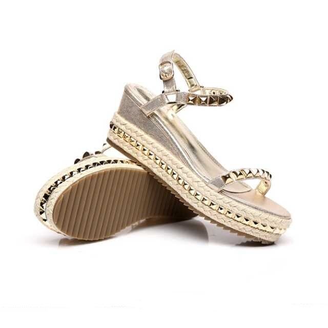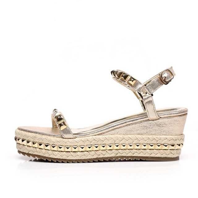 キラキラしたゴールドのビジューがとっても華やか&クールな印象のウェッジサンダル♪