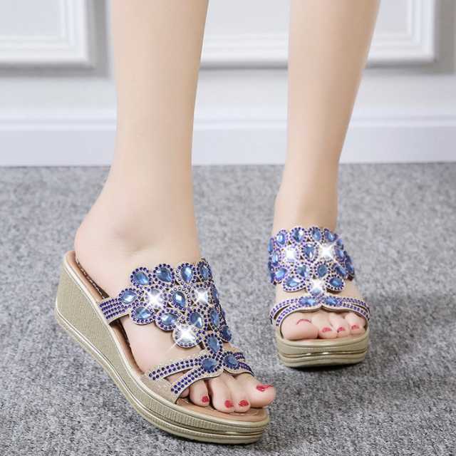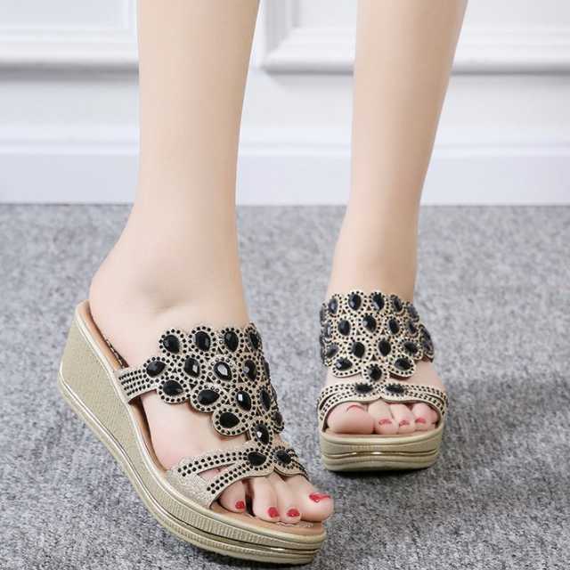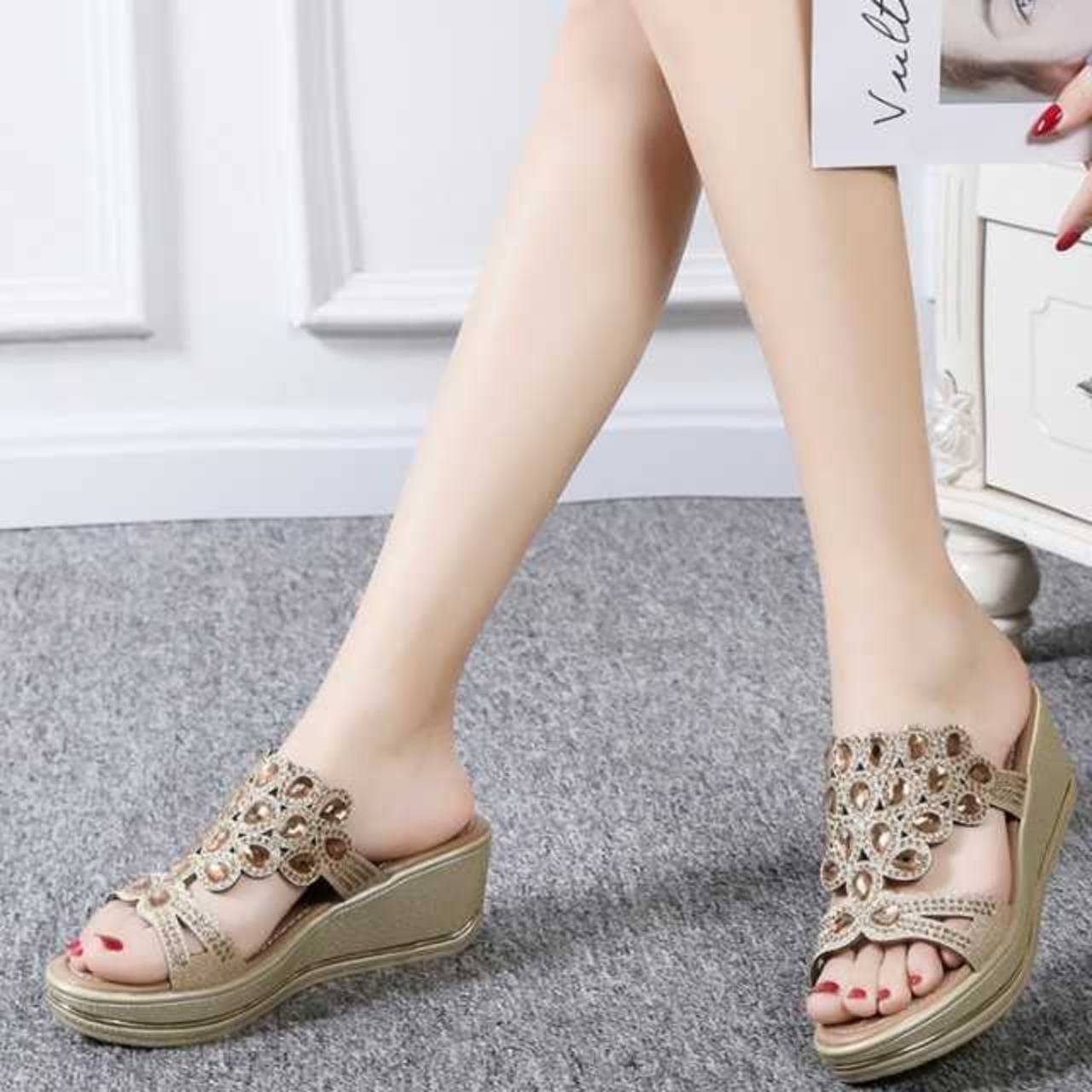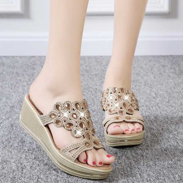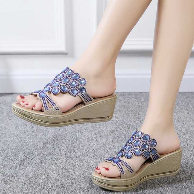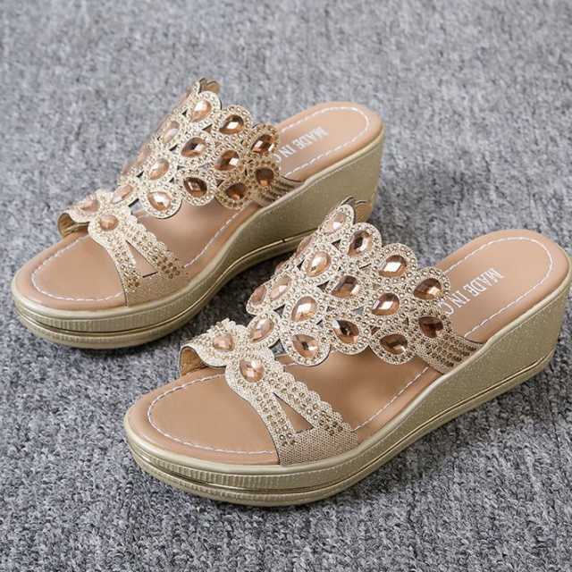 キラキラのビジューで華やかにデザインされた厚底サンダル♪