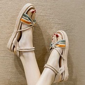 まるでリボンや蝶のようなキュートなデザインのローヒールサンダル♪
