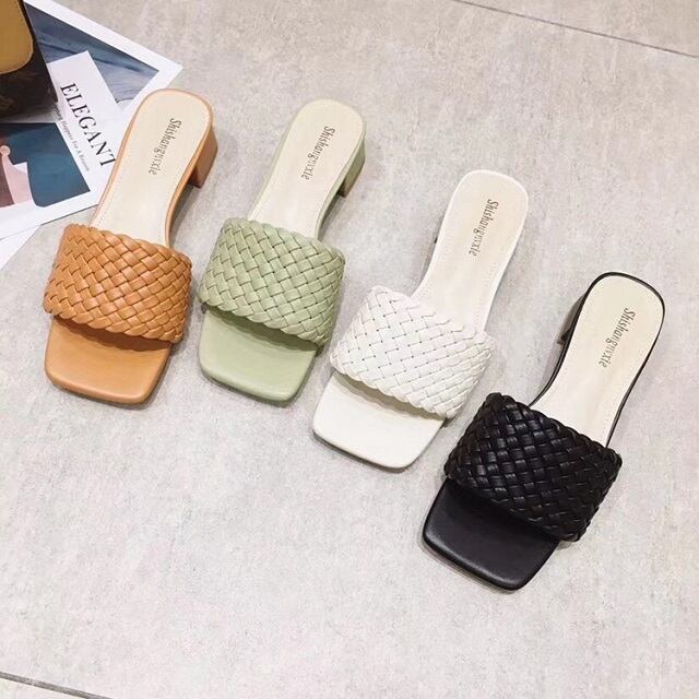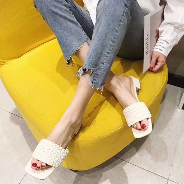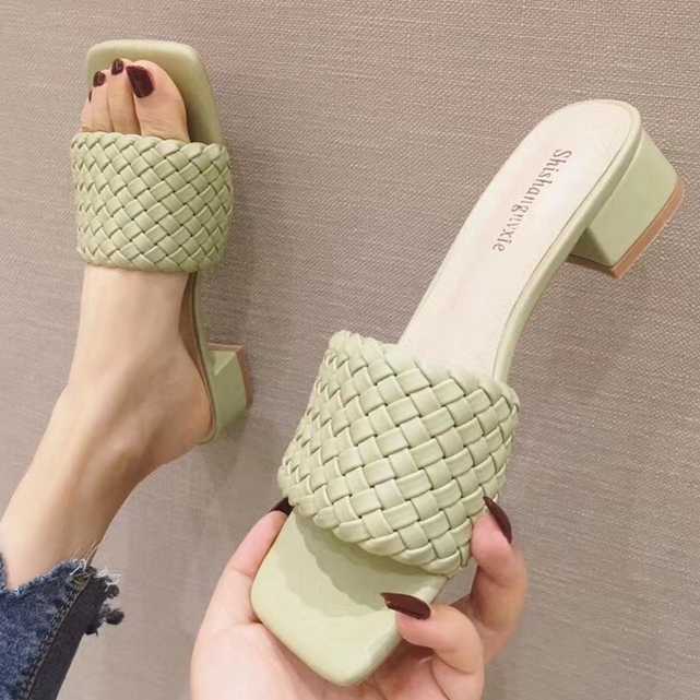 《入荷待ち》全4色 ミュール サンダル レディース ヒール チャンキーヒール ツイストメッシュ ミュールサンダル ミュール ニット オープントゥ サンダル カジュアル 安定感 美脚 キレセク