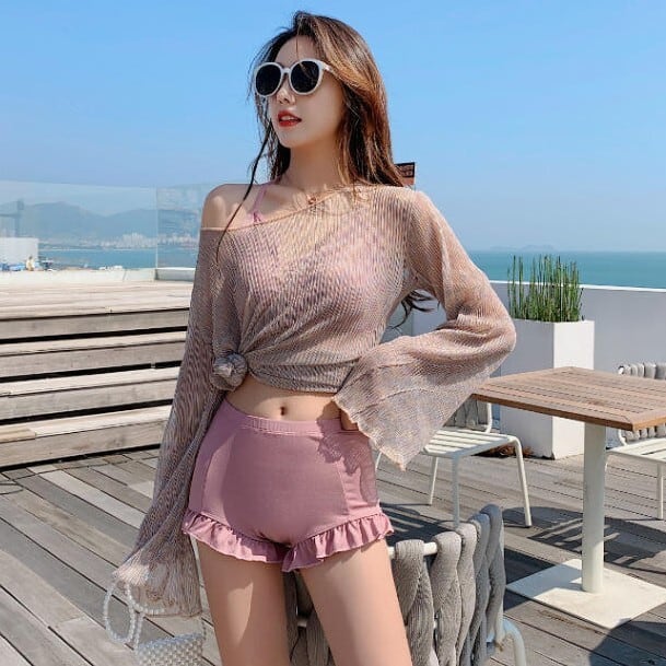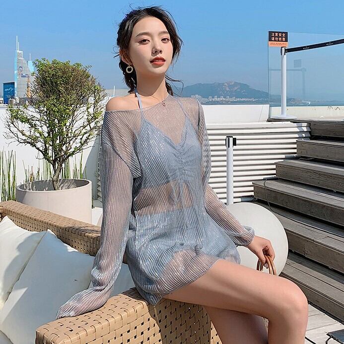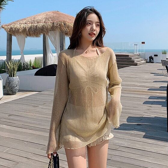シースルートップスがオシャレに体型カバーを叶えてくれる、ビキニとトップスの3点セット。