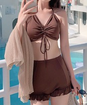 胸元のシャーリングと、ショーツのフリルがフェミニンなビキニです。