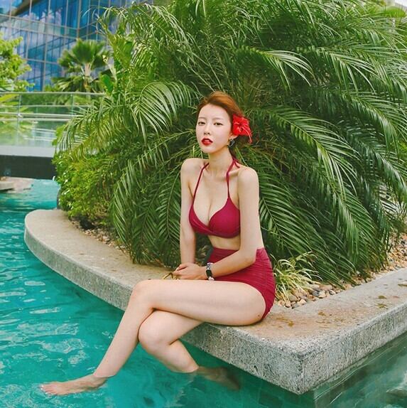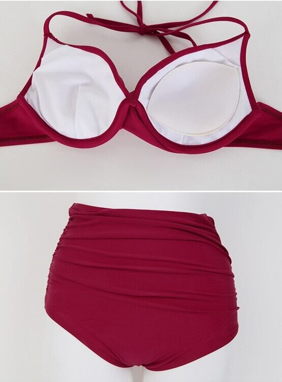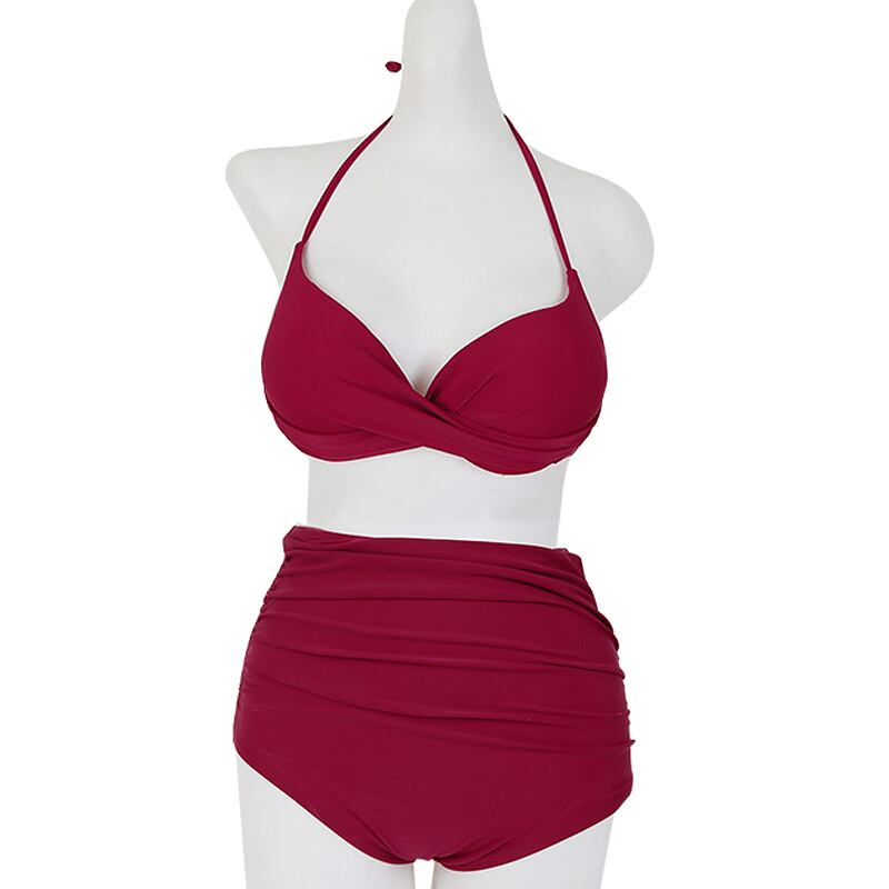 全3色 大きいサイズ 水着 ビキニ フロントツイスト ホルターネック ハイウエスト ベーシック 無地 シンプル セクシー 体型カバー 海 ビーチ プール 海水浴 リゾート ママ 水20 水30 水40