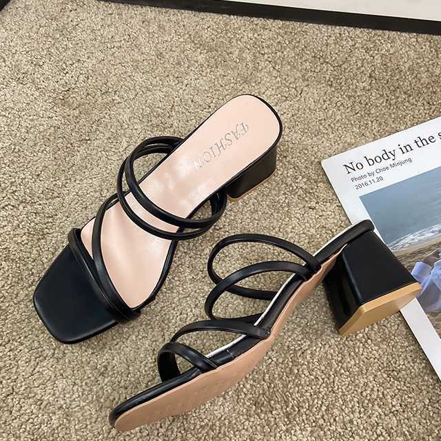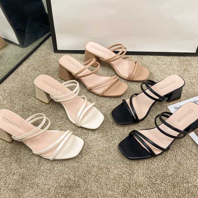 《入荷待ち》 全3色 サンダル ミュール スクウェアトゥストラップサンダル レディース シューズ ローヒール サンダル スクウェアトゥ 美脚 キレセク