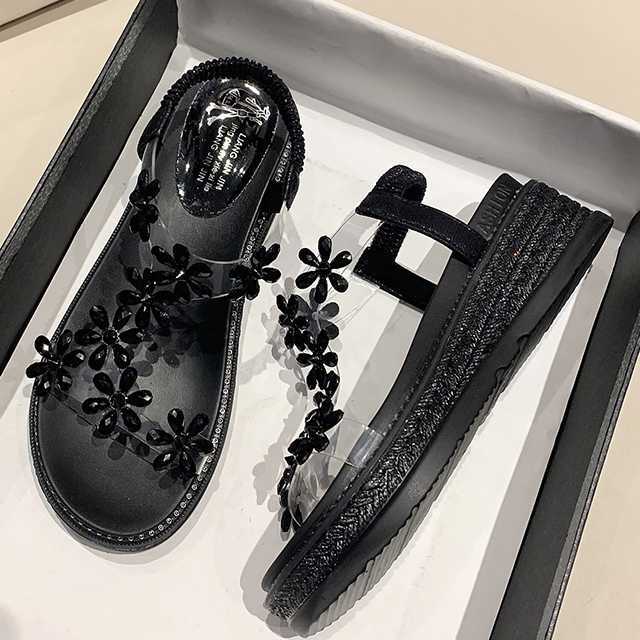 《入荷待ち》全2色 サンダル ウエッジソール 前厚 厚底 フラワー ヒール レディース靴 サンダル ミュール 春夏 厚底ウェッジ 靴 レディース ジュートラップ オーペントゥ オシャレ ビーチサンダル キレセク