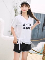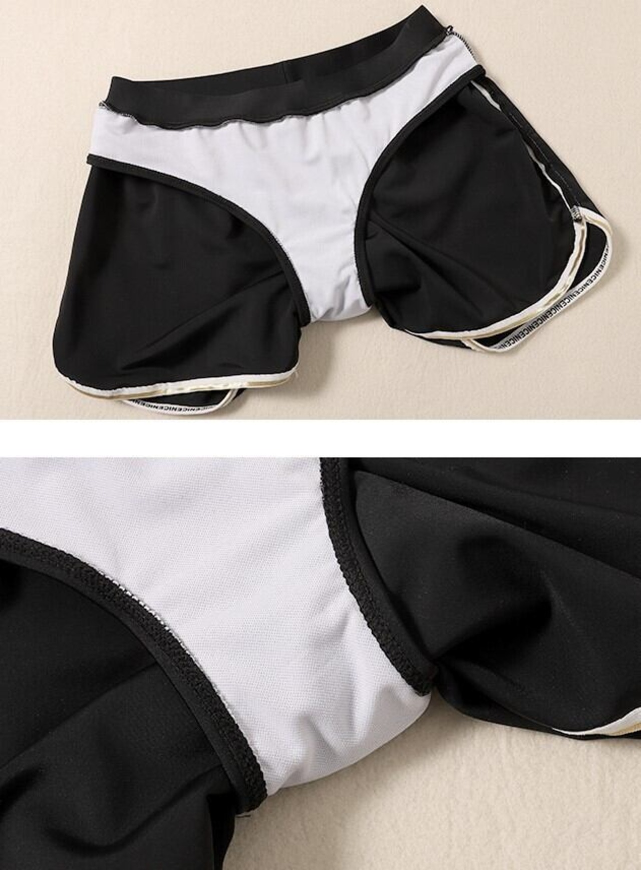 大きいサイズ スイムウェア タンキニ水着 シンプルデザイン 半袖ラッシュガード 露出控えめ モノクロデザイン スポーティスタイル フィットネス セパレート水着 体型カバー
