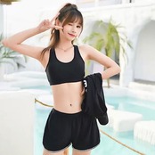 シンプルでスポーティーなデザインのビキニ+ラッシュガードの、嬉しい3点セット。