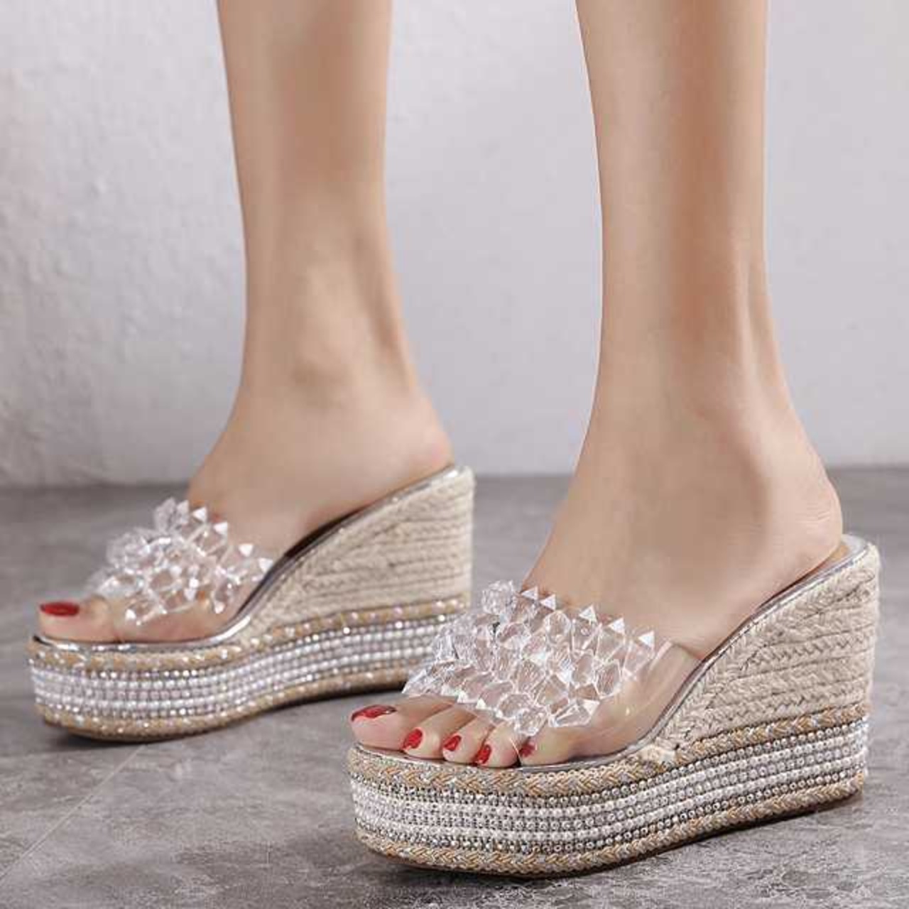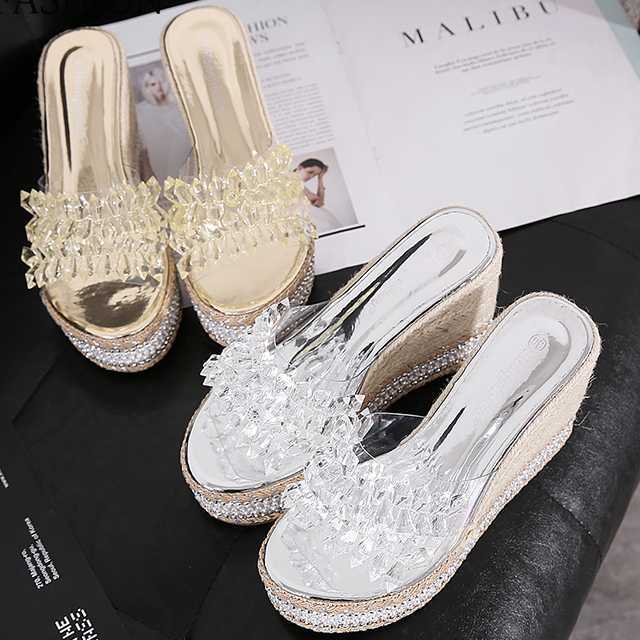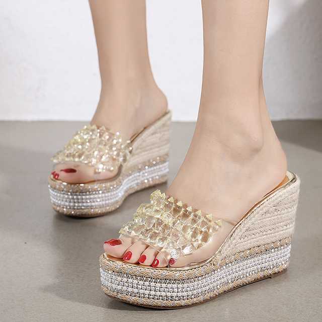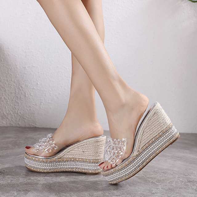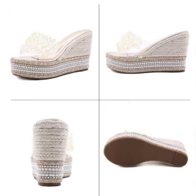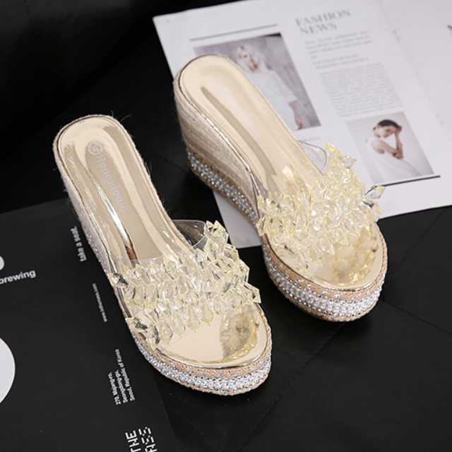透明感のある美しいビジューが印象的なウェッジソールサンダル。