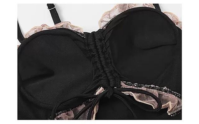 フロントリボンが可愛いミニ丈の水着。