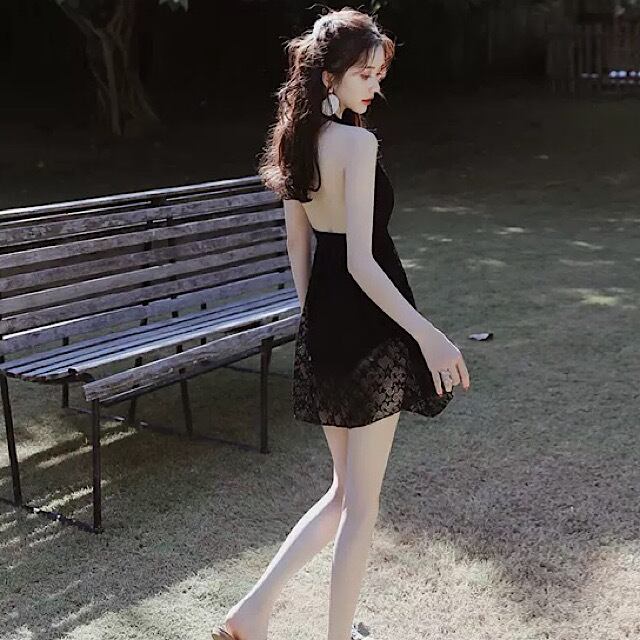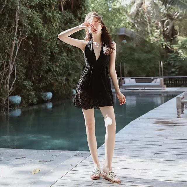 《入荷待ち》V字ネック 大胆 セクシー レース 星柄 フェミニン ハイウエスト 脚長効果 ワンピース水着