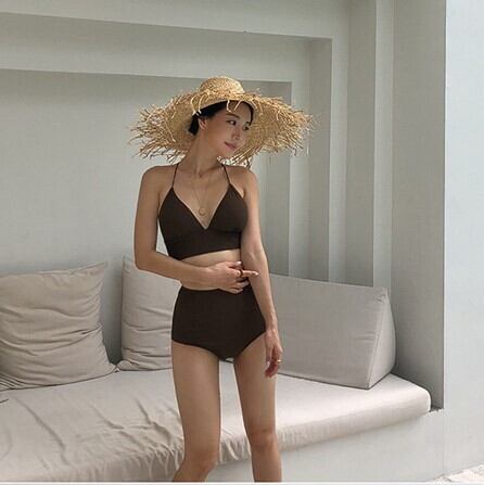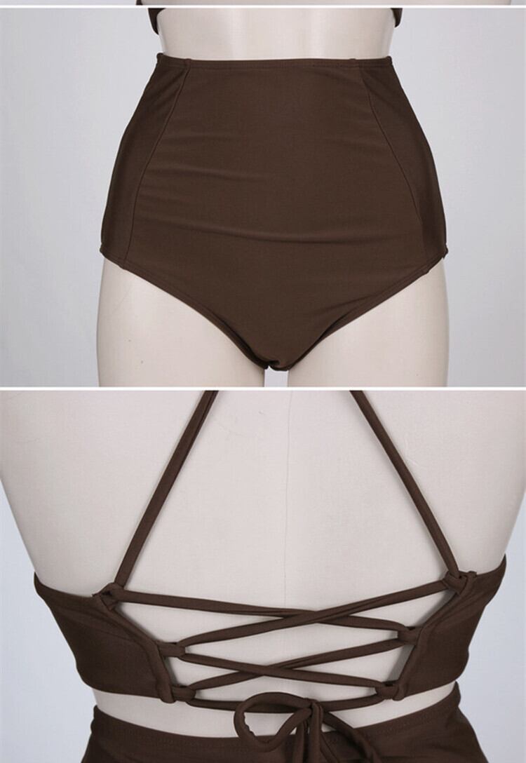 大きいサイズ 水着 ビキニ ハイウエスト レースアップ バックシャン 無地 シンプル レトロ セクシー 体型カバー 海 ビーチ プール 海水浴 リゾート ママ 水20 水30 水40