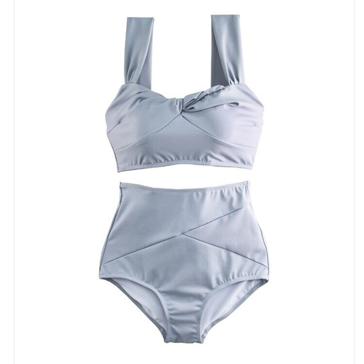 全2色 大きいサイズ 水着 ビキニ タンキニ ハイウエスト フロントツイスト フェミニン 無地 シンプル 清楚 体型カバー 海 ビーチ プール 海水浴 リゾート ママ 水20 水30 水40