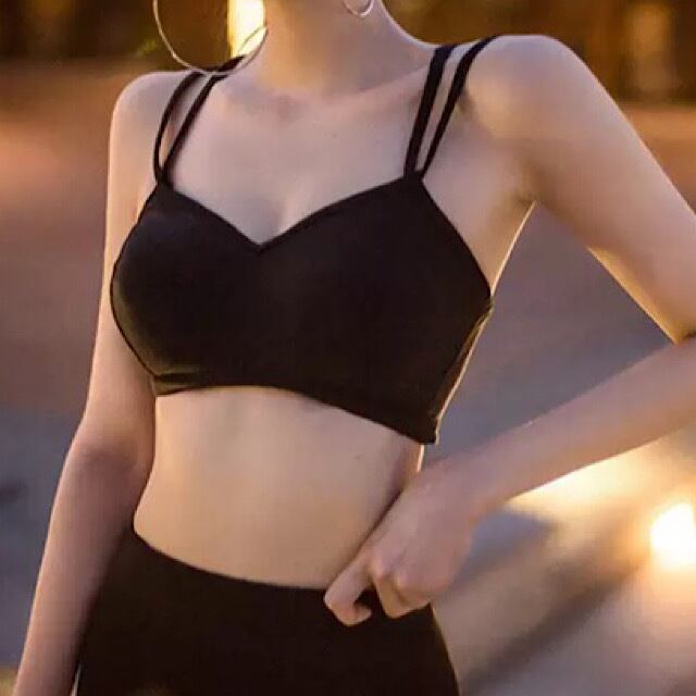 ショルダーストラップは後ろでクロスされているのでスッキリした印象に◎