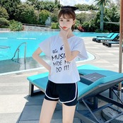 《入荷待ち》全2色 水着 ビキニ タンキニ 3点セット ショートパンツ ラッシュガード スポーティー シンプル 体型カバー 海 ビーチ プール 海水浴 リゾート ママ 大きいサイズ セット 水20 水30 水40