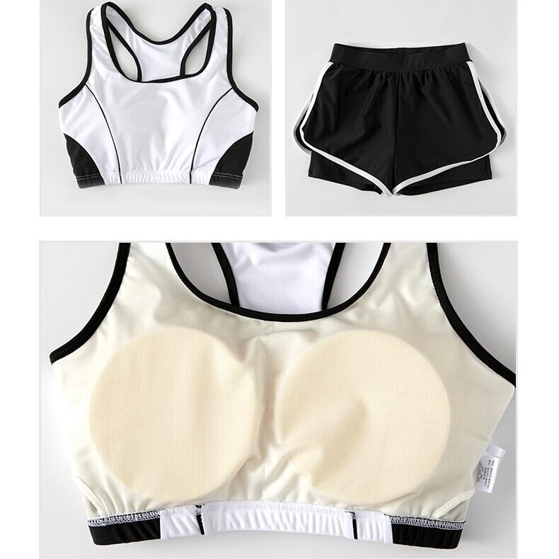 取り外し可能のカップ付きで、重ね履き風のショートパンツはめくれても安心です。