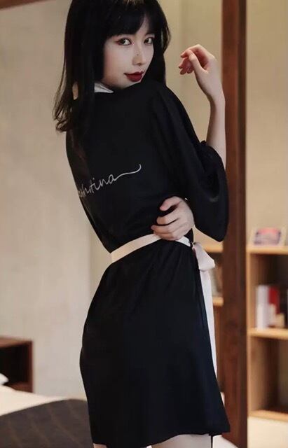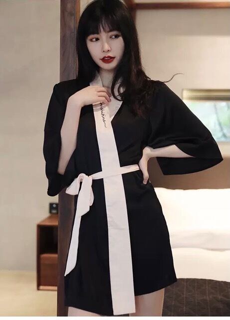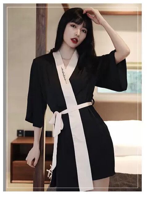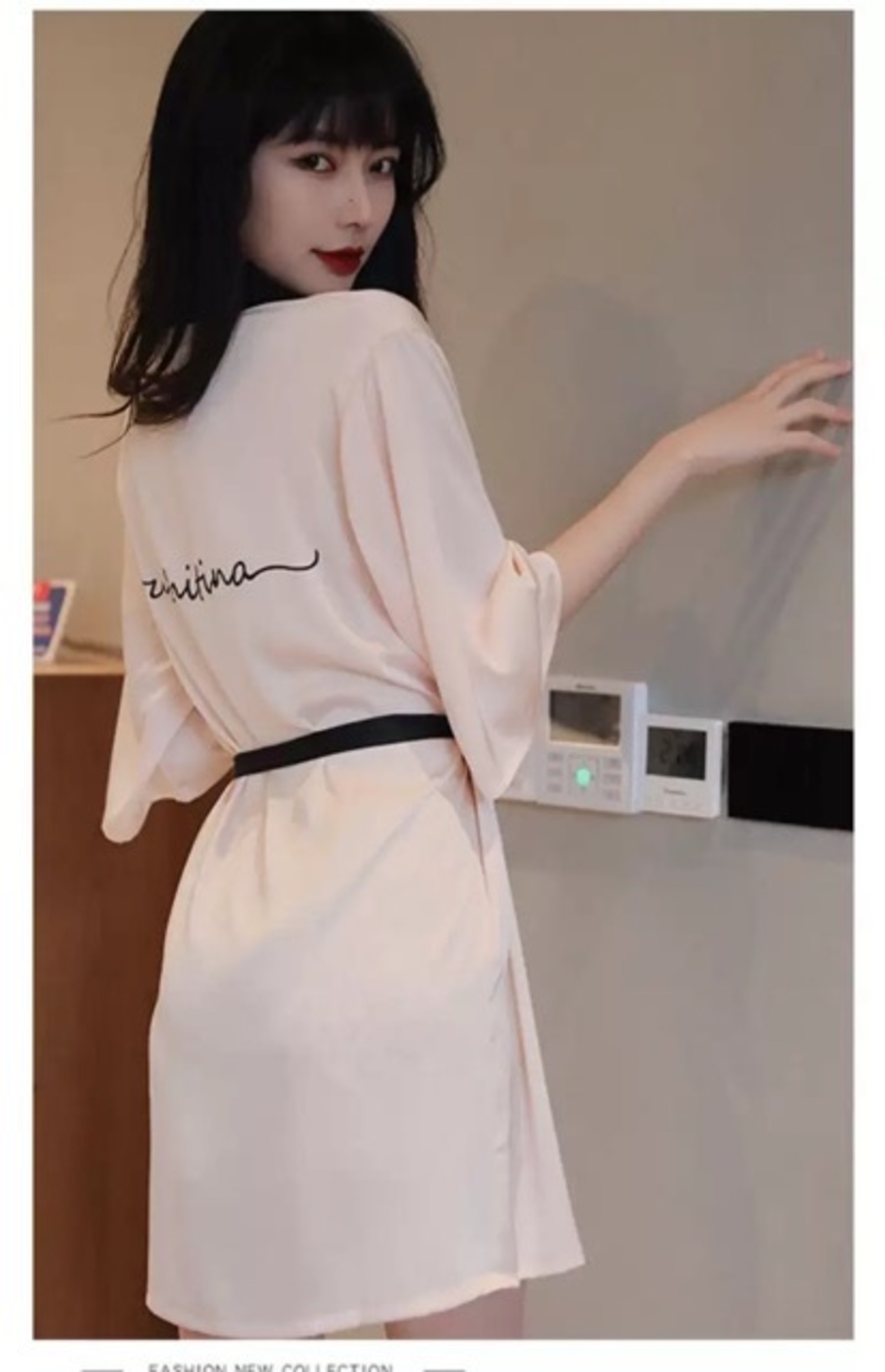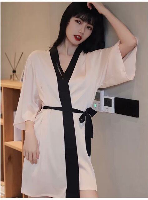 バイカラー 大人可愛い ナイトウェア ゆったりサイズ ガウン インナー セット セクシー サラリ生地 Roomwear