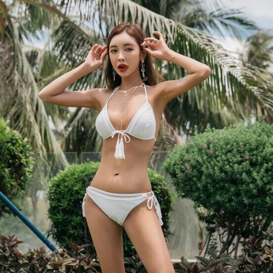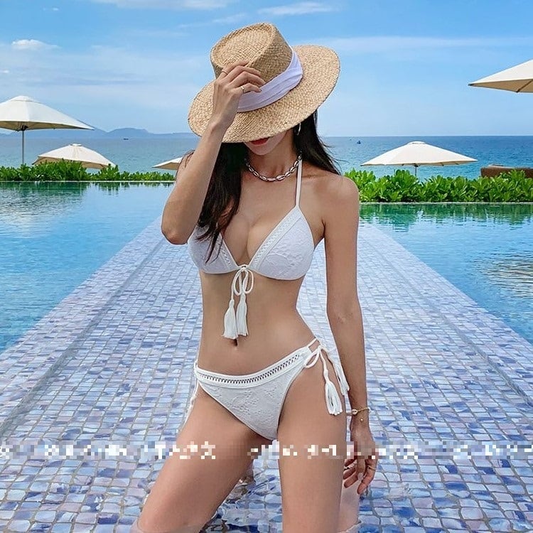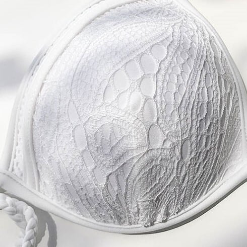 レース素材が清楚な印象を与えてくれる、三角ビキニ。