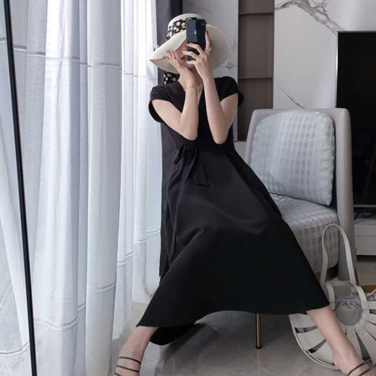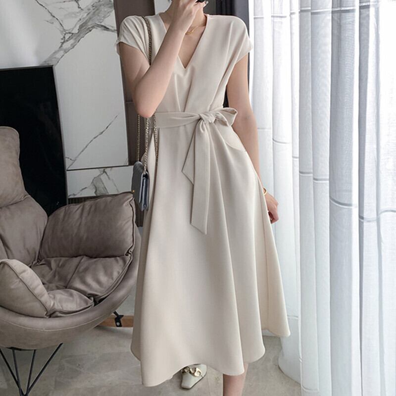ワンピース マキシ丈ワンピース マキシワンピース ミモレ丈 ロングワンピース フレンチスリーブ レディース マキシワンピ マキシ 半袖 ワンピ Vネック 無地 シンプル 半袖 きれいめ 上品 ビッグサイズ 大きいサイズ ウエストマーク リボン キレセク