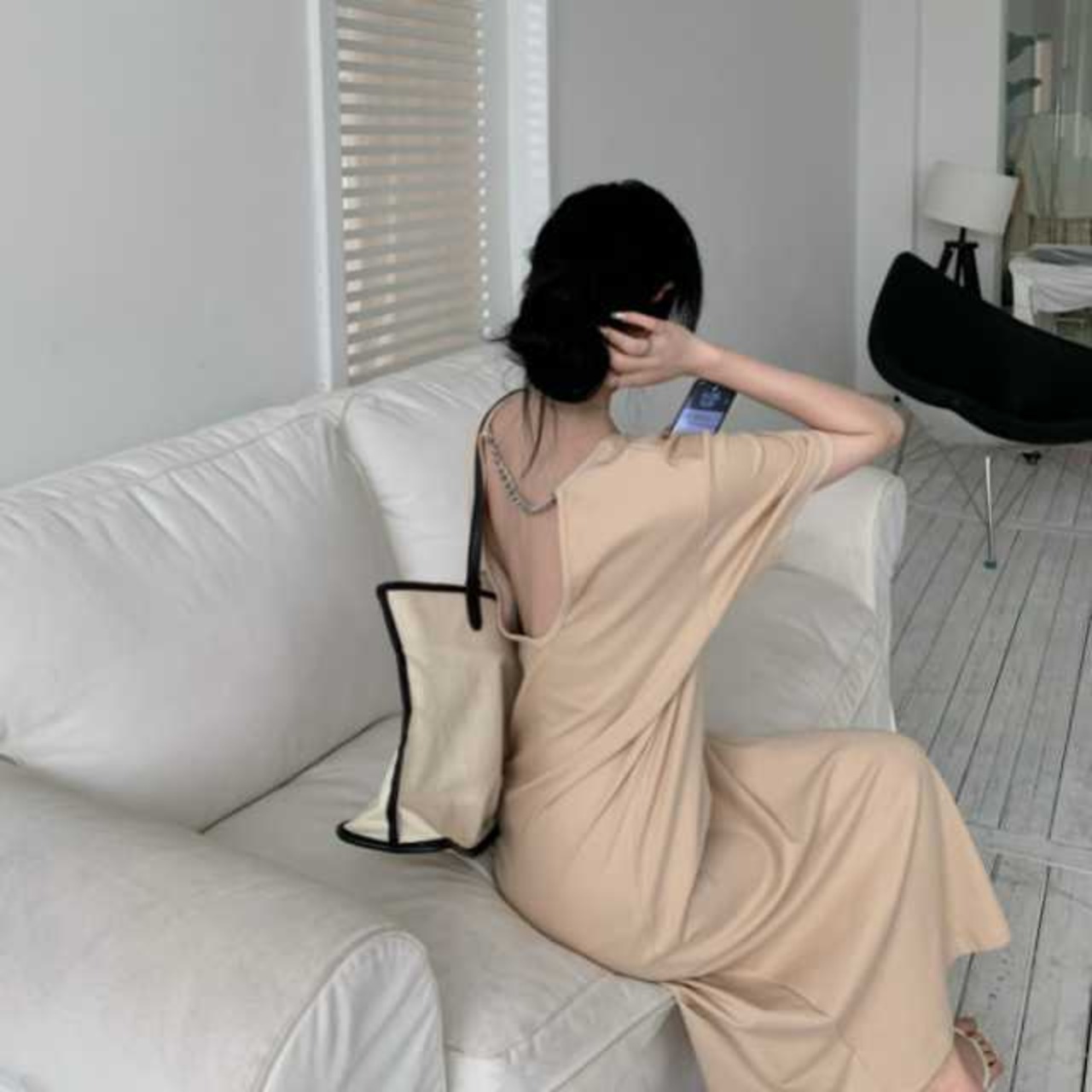 オープンバックがセクシーで大人の魅力を感じさせるロングワンピース♪