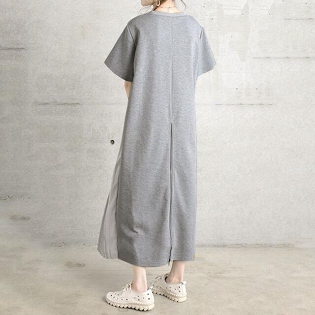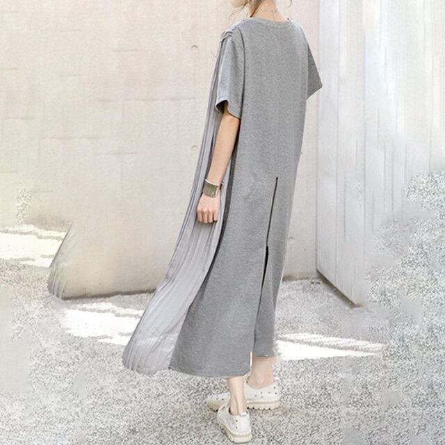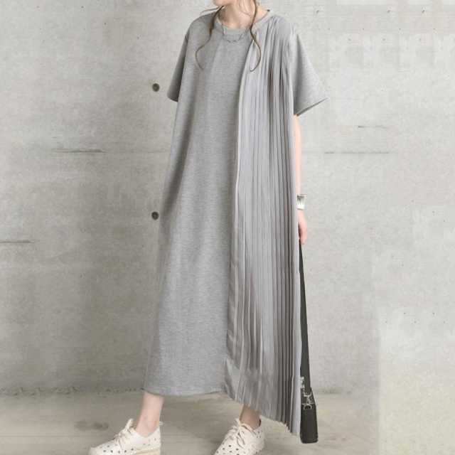 ワンピース プリーツワンピース ロングワンピース ロング マキシワンピース プリーツ Tシャツワンピース レディース ワンピ スリットワンピース シフォン 半袖 キレセク