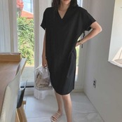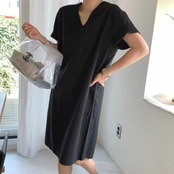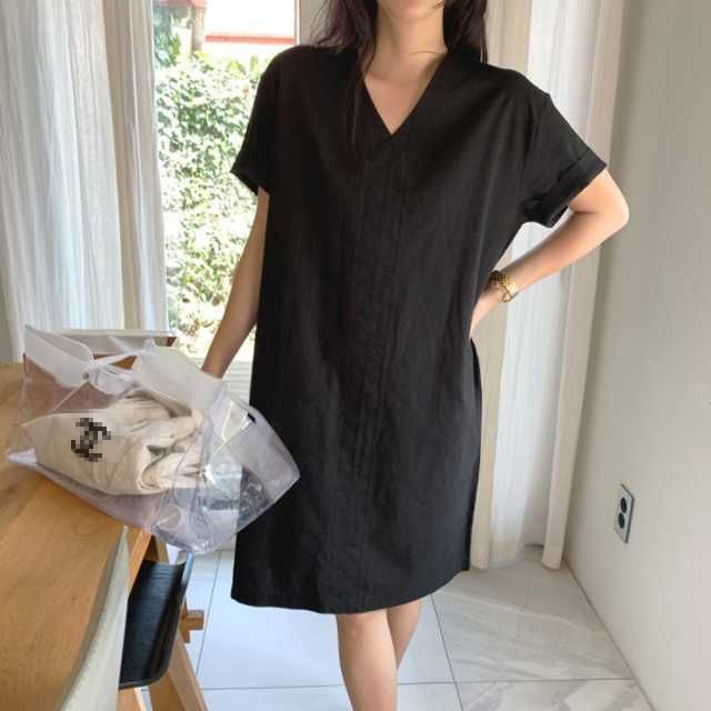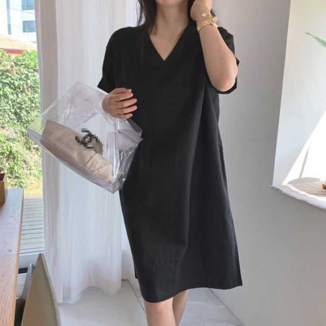 ワンピース Tシャツワンピース ミディアム丈 ミディアムワンピース タイトワンピース レディース きれいめ Vネック 半袖 膝丈 無地ワンピース 大人女子 キレセク