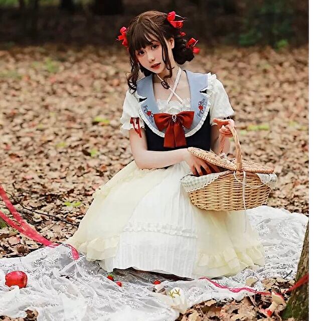 《入荷待ち》ロリィタ ロリータ 白雪姫 メルヘン セットアップ ドレスワンピース オーバースカート ベスト 大きいサイズ 夢かわ
