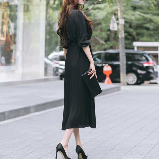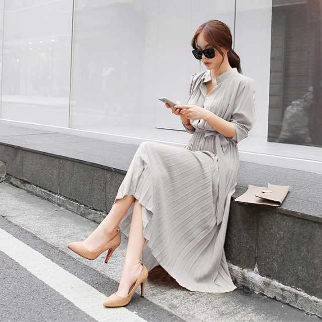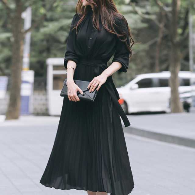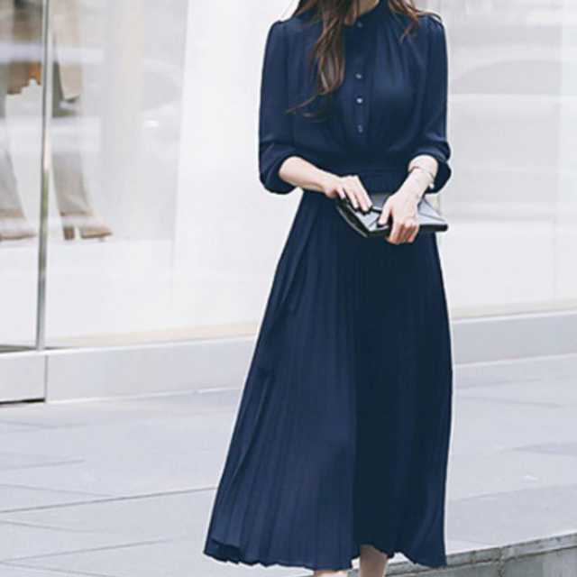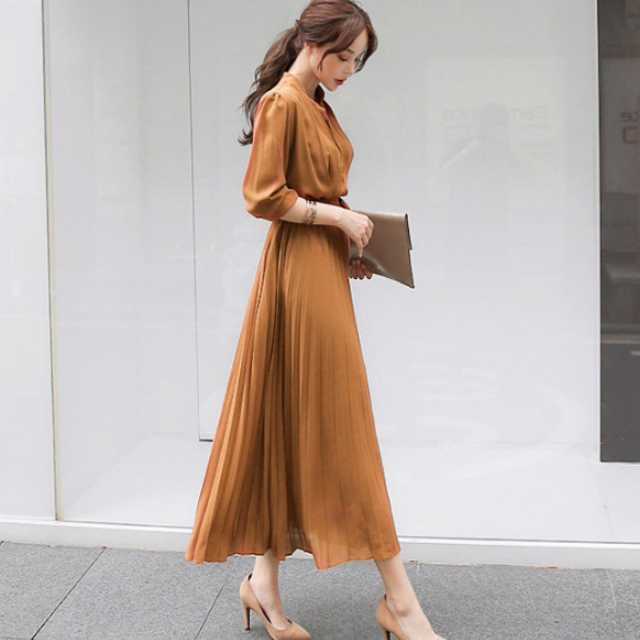 《入荷待ち》ワンピース プリーツ プリーツワンピース シフォンワンピース レディース 長袖 七分丈 春 夏 秋 冬 ロング マキシ ロングワンピース マキシワンピース シャーリング 裏地付き 綺麗 大きいサイズ 4色 きれいめ キレセク