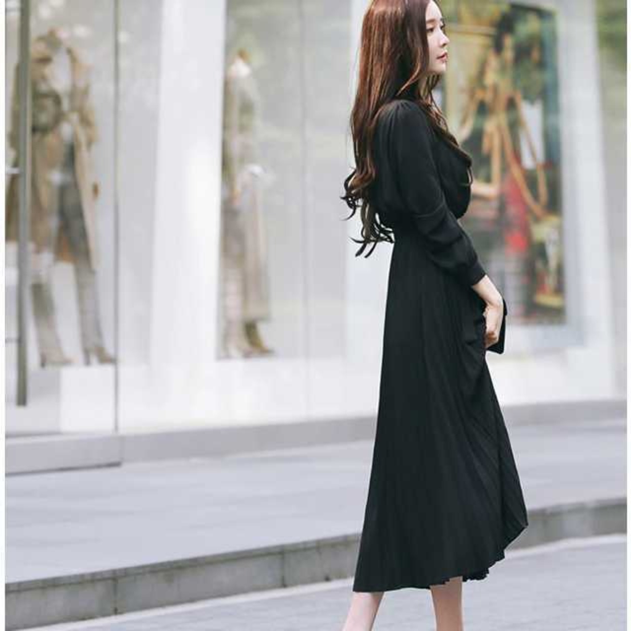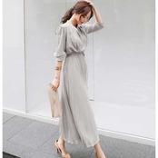 滑らかに揺れるプリーツスカートが印象的な、シフォンロングワンピース♪